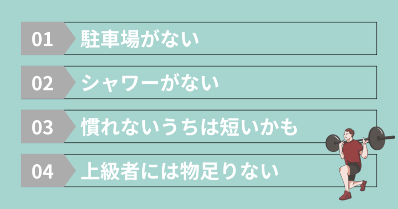 ハコジム西原店は、清潔感や設備の充実度などで高く評価されている一方で、少しながら注意しておきたいポイントも見受けられます。